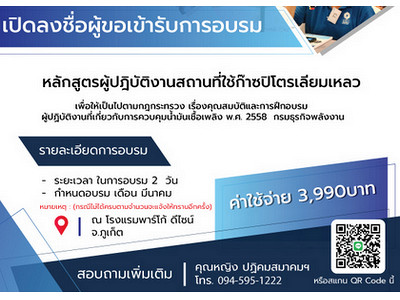 หลักสูตรผู้ปฎิบัติงานสถานที่ใช้ก๊าซปิโตรเลียมเหลง